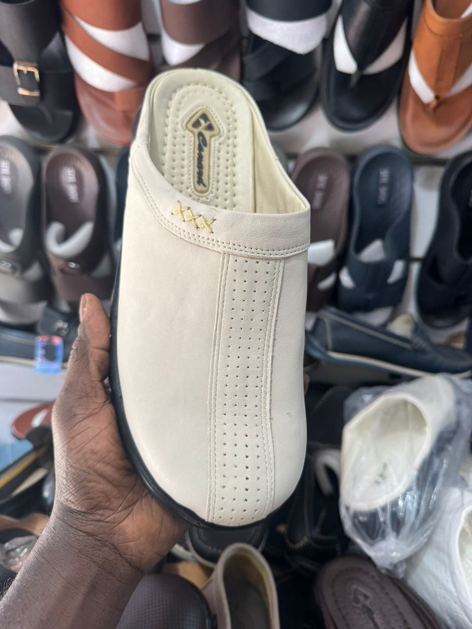 Nom du produit : Mules Canard – Cuir Blanc Ultra-Respirant