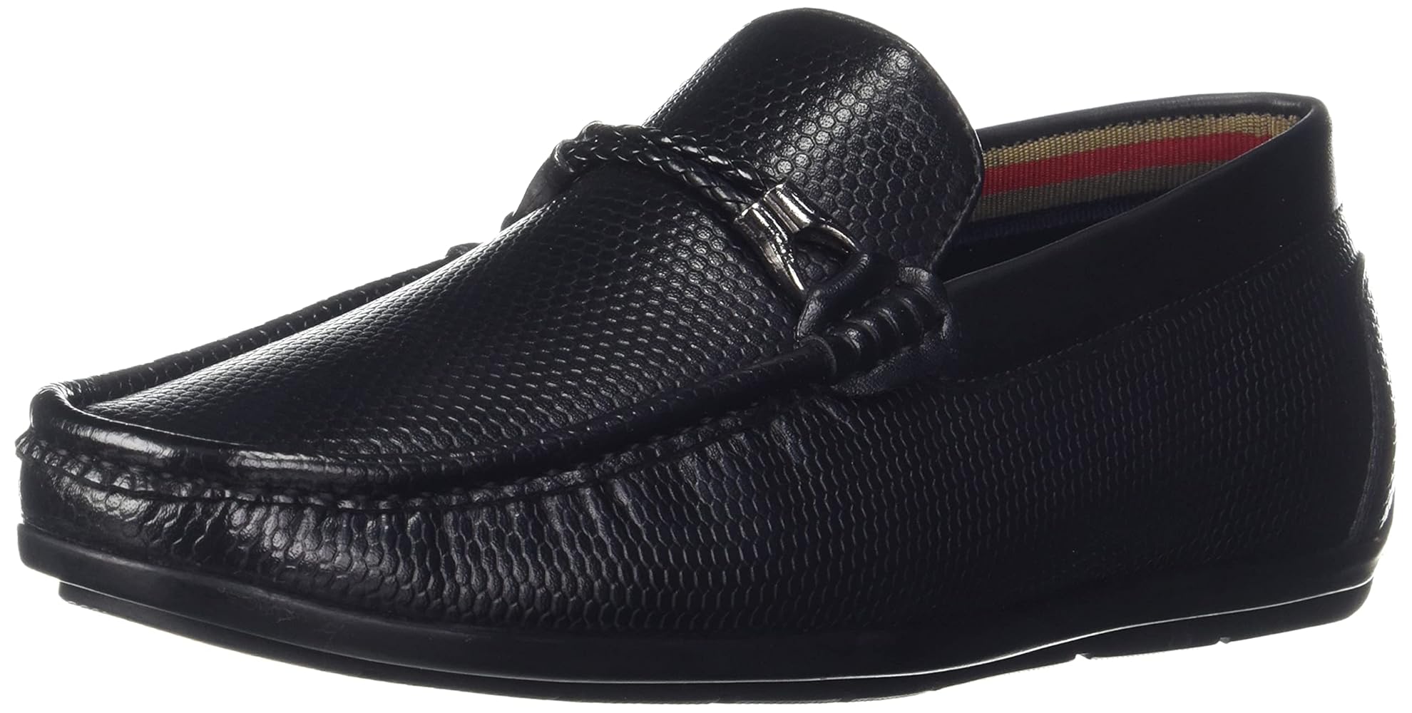 Ce lot de mocassins présente un style classique et intemporel revisité par une texture gaufrée distincte qui ajoute du caractère et de la modernité. Disponibles en trois coloris essentiels – marron, noir et bleu marine – ils offrent une option chic pour chaque tenue. Le design est rehaussé d'une barre de maintien tressée ornée d'une boucle métallique discrète, soulignant l'aspect soigné de la chaussure. Les surpiqûres apparentes contrastantes (notamment sur les modèles noir et bleu) mettent en valeur la forme du mocassin.